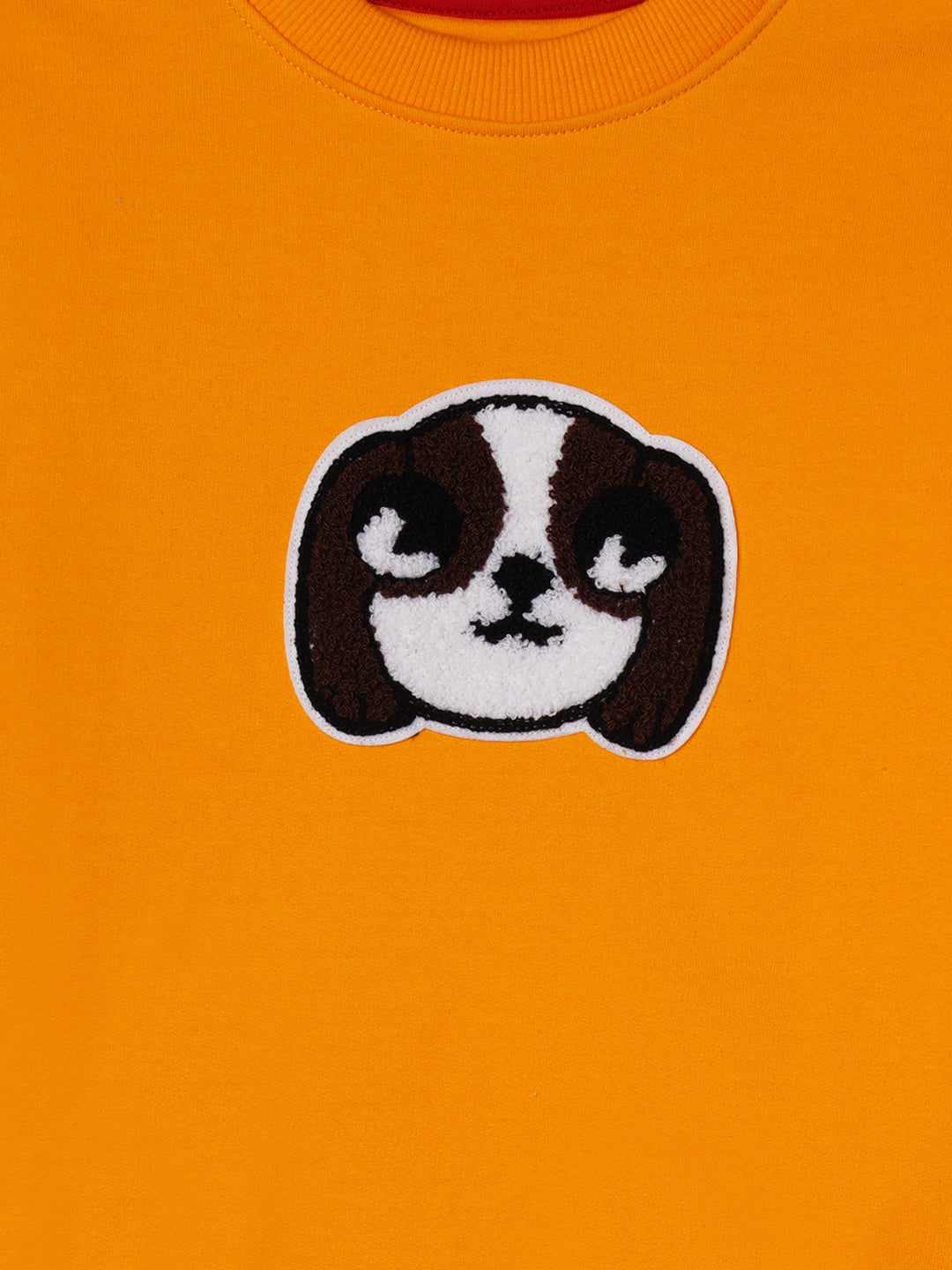 Zion Boys Sweatshirt with Cute Dog in Terry Embroidery